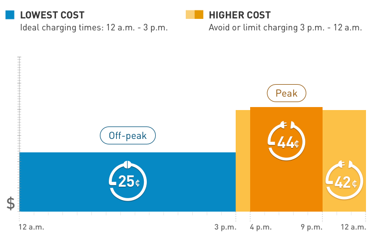 This chart shows the different rates for electricity under the EV2A rate plan. As you can see, the rate is lower during off-peak hours than during peak hours.